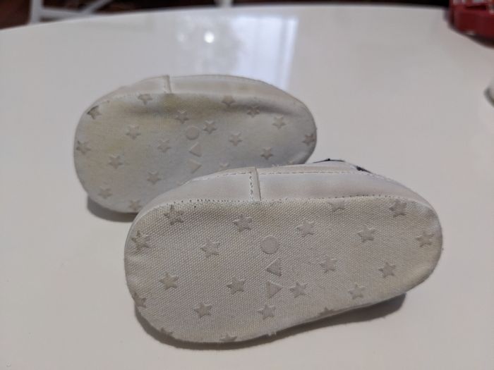 Jolie paire de basket blanche et bleu marine Taille naissance Très peu portée. Très bon état. Possibilité de faire des lots 😉