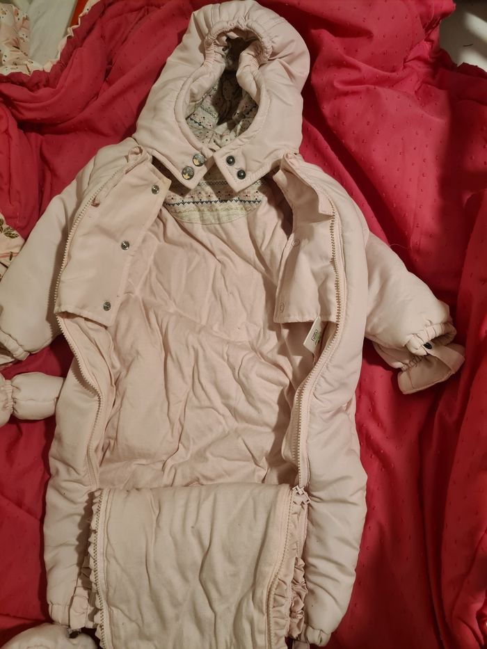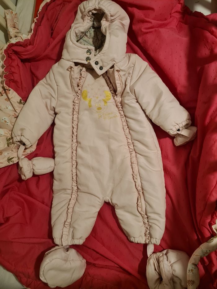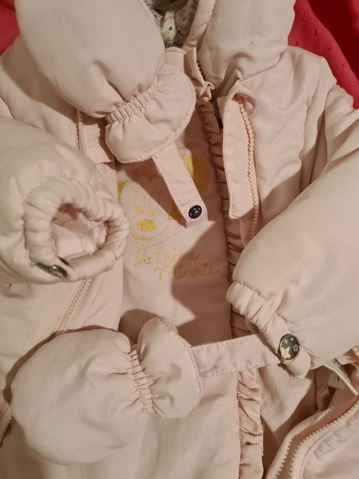 Combipilote rose à motif Minnie doree comprenant chaussons et moufles taille 6 mois presque neuf