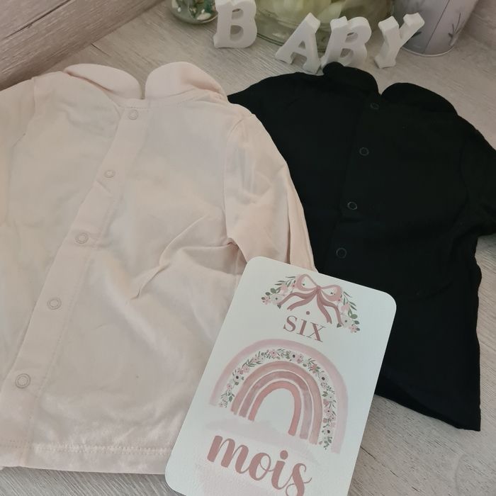Lot de 2 t-shirts manches longues En très bon état Kiabi 6 mois 67 cm S'ouvrent entièrement derrière avec des pressions Noir Rose pâle