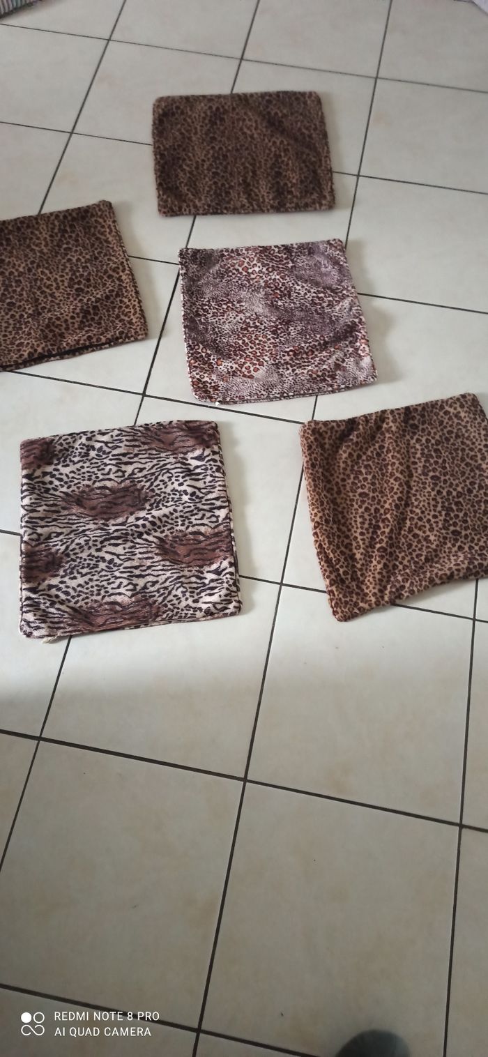 Vends un plaid et 5 housses, de coussin ( dont 1 avec fermeture Hs)