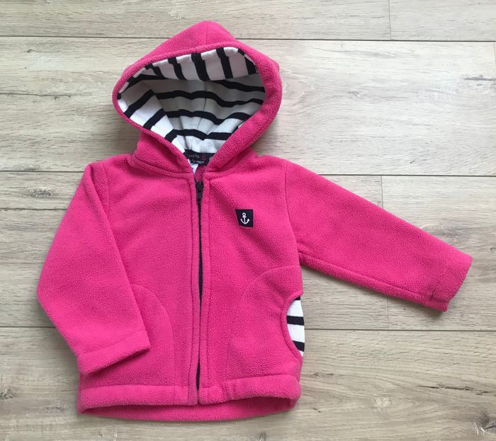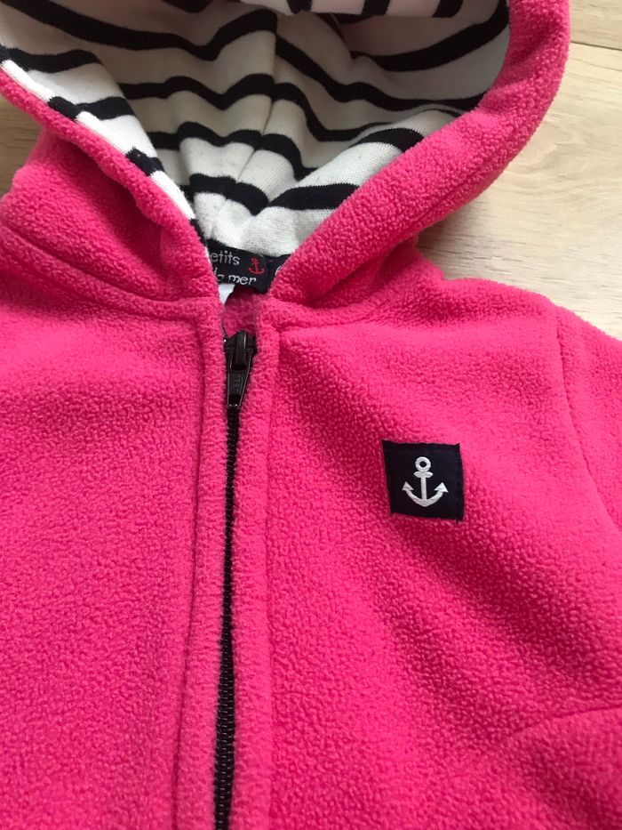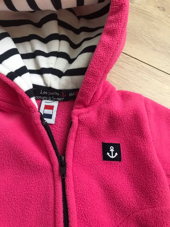Veste polaire 6M les petits cœurs à la mer Rose fuschia capuche marinière