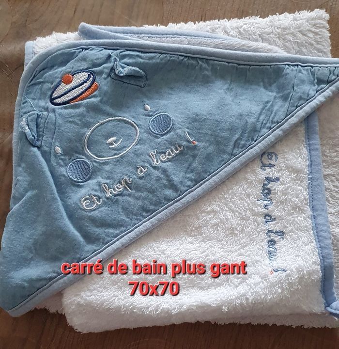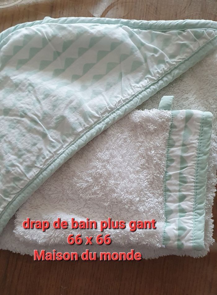 Lot de 3 sorties de bain Couleur : 1 blanche capuche blan et vert 1 blanche capuche étoile bleue inscription mini moussaillon 1 blanche capuche bleue inscription et hop à l eau Marque Maison du monde et autre Maison non-fumeur sort