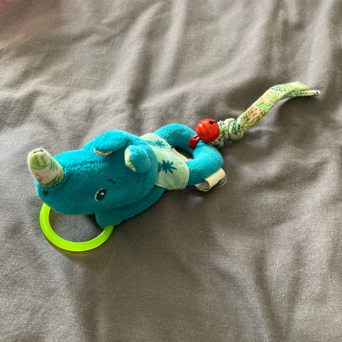 Rhinocéros bleu turquoise avec anneaux et clochettes ! (C8)