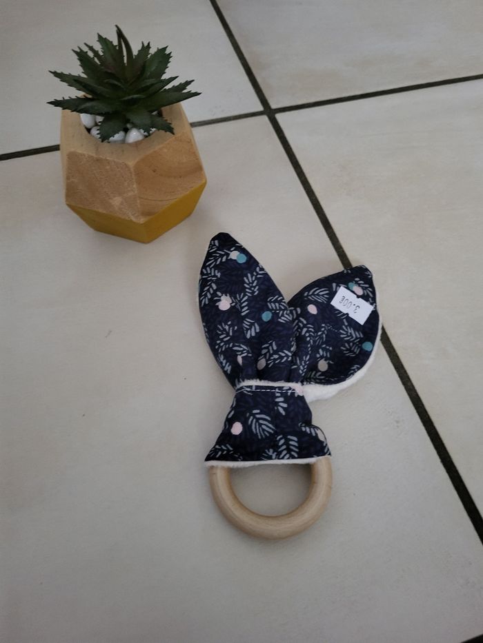 anneau de dentition en tissu oeko tex et minky anneau en bois naturel
