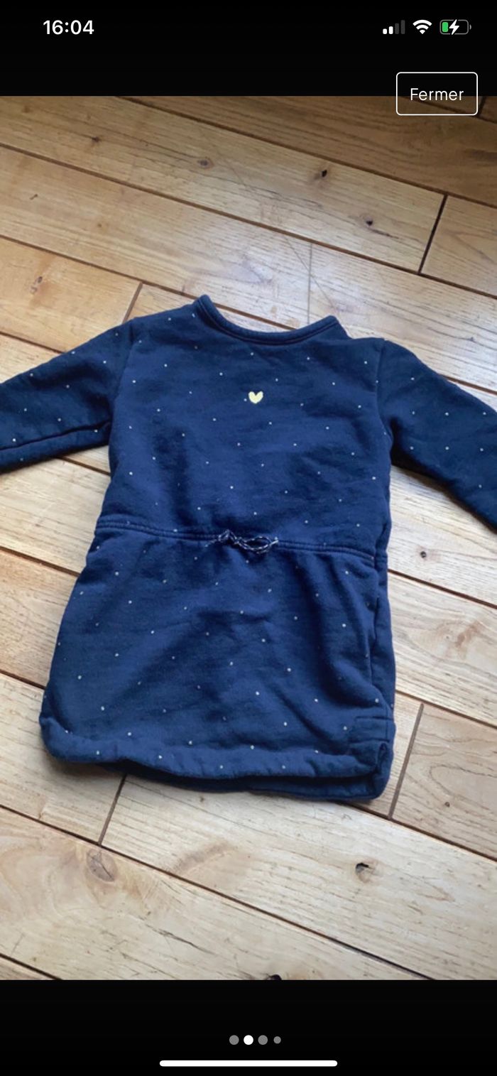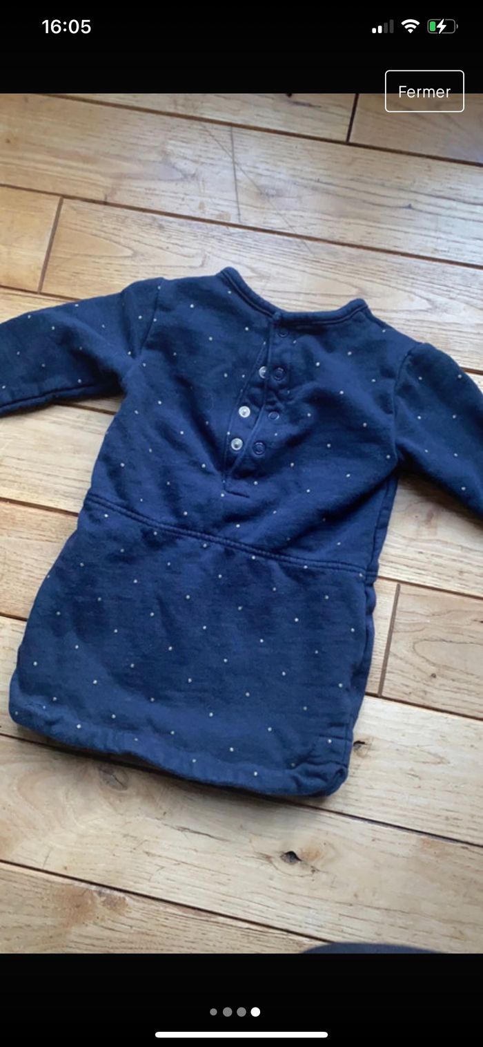 Robe / tunique Kiabi Bleu marine pois doré Taille 24 mois pais taille petit plutôt pr du 1mois Matière sweat Parfait état portée une fois
