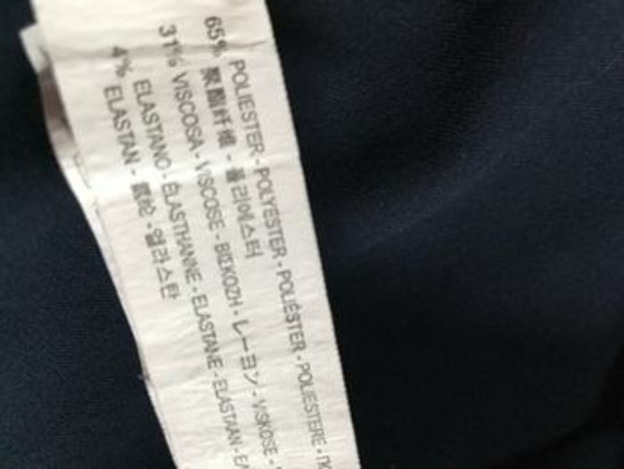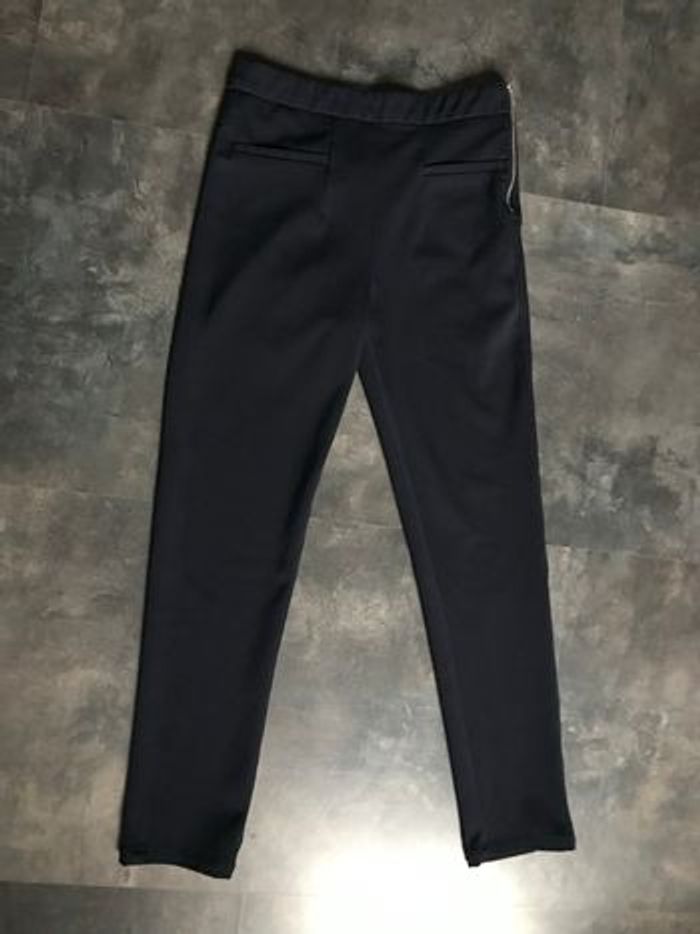 Très joli pantalon fuseau bleu marine Fermeture latérale Tissus souple, strech et sûrement très agréable à porter 65% polyester 31% viscose 4% élasthanne L’étiquette indique un S mais taille petit, correspondant à un 14/16 ans , La ceinture mesure à plat 32,5 cm Longueur entre jambes 64 cm Largeur à plat bas des jambes 13,5 cm Bershka état neuf