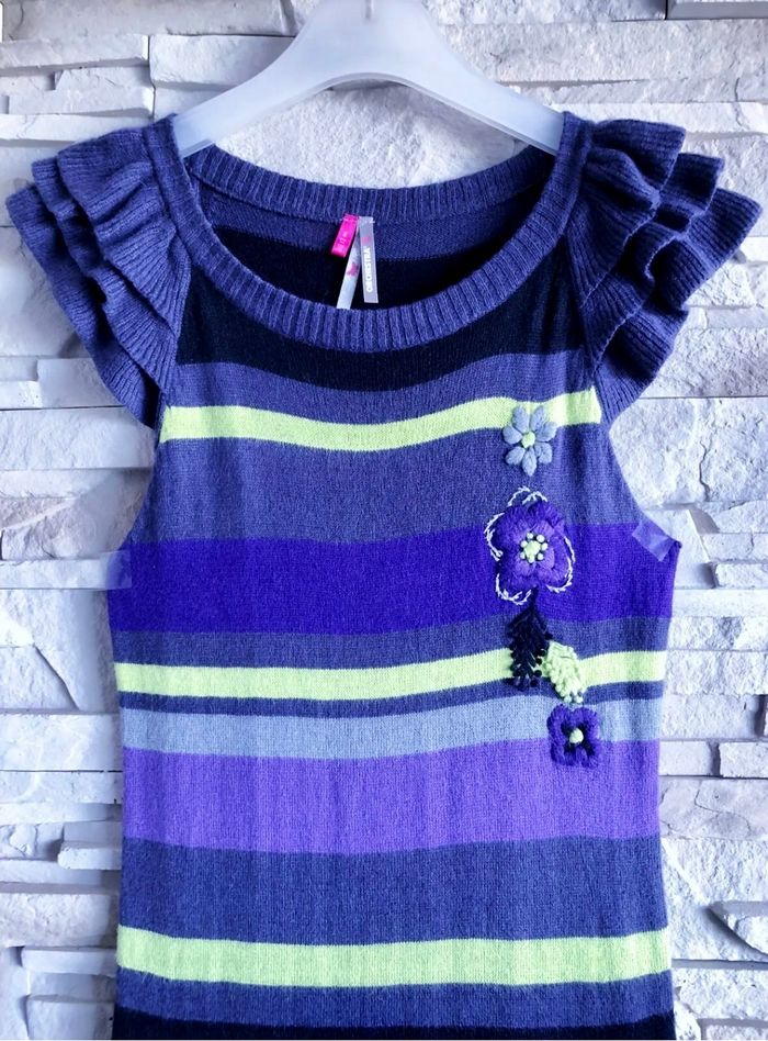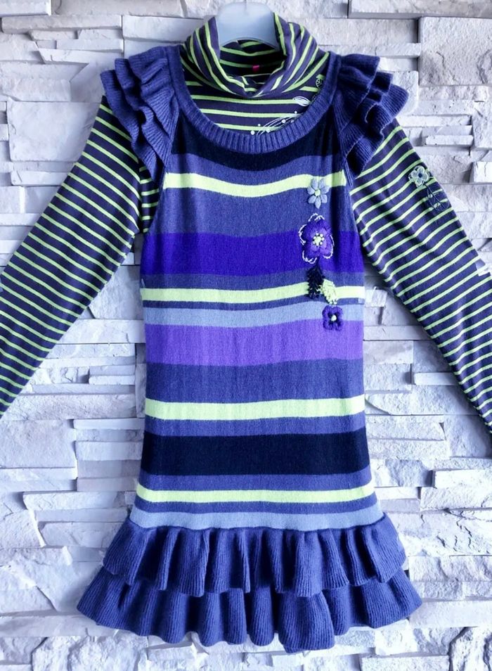 MARQUE : ORCHESTRA... ETAT : TRÈS BON !!! TAILLE : 8 ANS OU STATURE 128 CM COLORIS : GRIS + VIOLET + ANIS + TAUPE... COMPOSITION : VISCOSE + ÉLASTHANNE... MOTIF : RAYURES + FLEURS PARTICULARITÉS : - Volants aux Manches & Bas de Robe - Broderies Fleurs Partie Haute de la Robe - Touches Argent Pailleté Encolure & Haut de Manche du Sous-Pull - Motifs Fantaisies - Contraste de Teintes Lumineuses