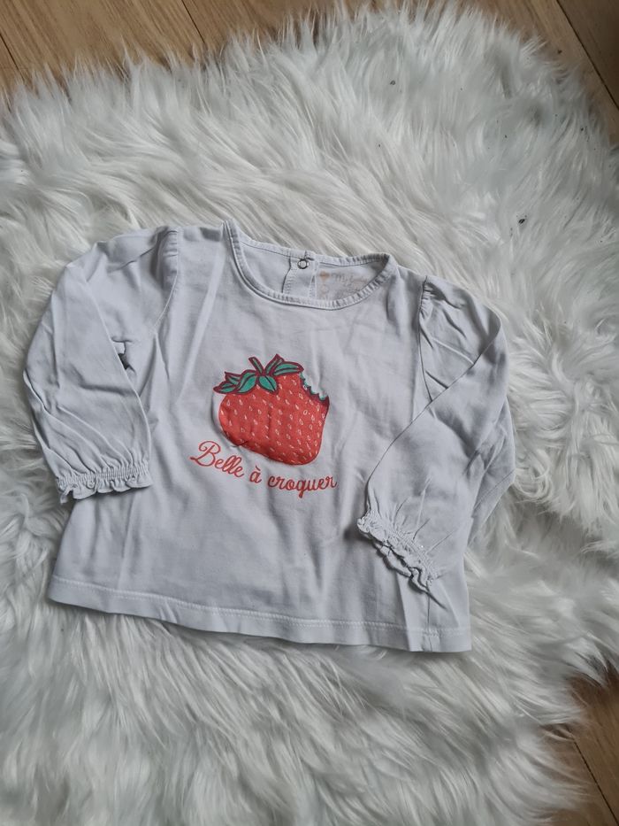 Haut blanc avec fraise "Belle à croquer" Tape à l'œil 12mois