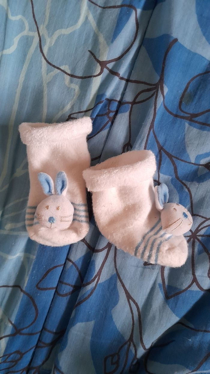 Chaussettes épaisses chaudes, avec un grelot dans chaque tête de lapin. De la naissance à 6 ou 8 mois environ