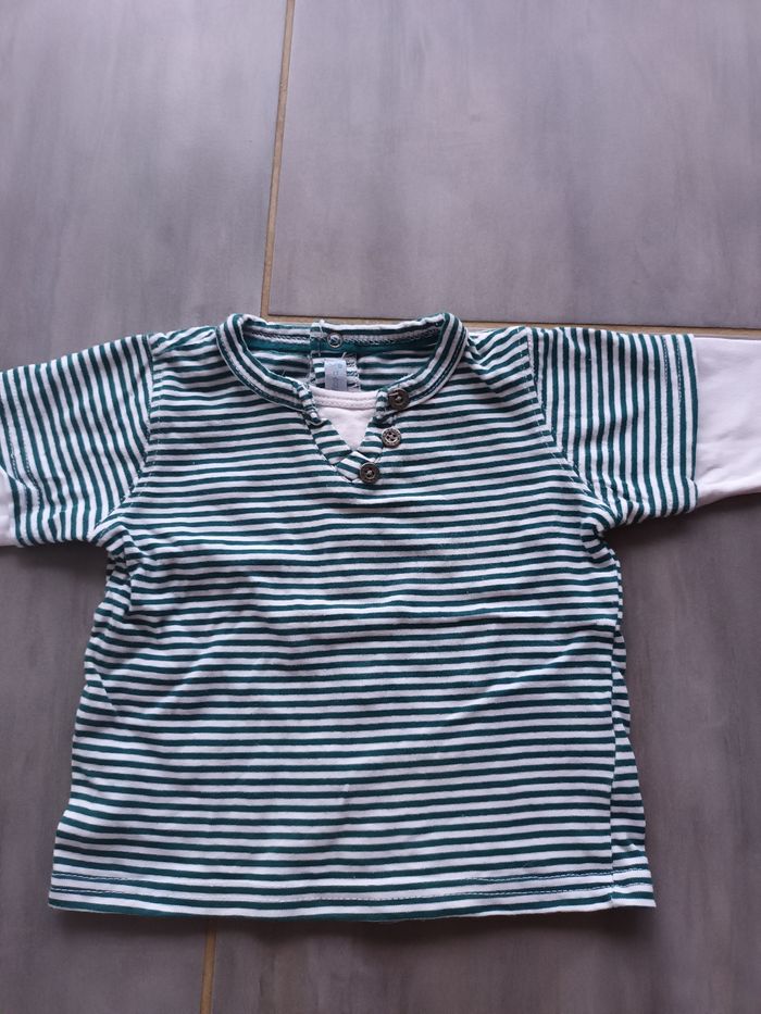 Bonjour je vend un t shirt manche longue rayé vert foncé et blanc taille 6 mois