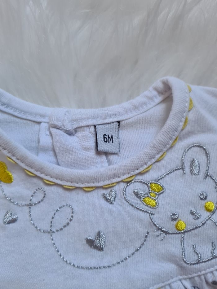 Robe blanc et jaune à motifs ( cœurs, chat et papillons) 6mois