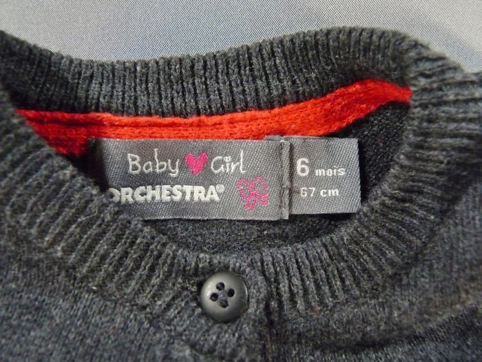 Gilet cardigan tricot gris foncé rouge fleurs nœuds Orchestra 6 mois 67 cm fille - photo numéro 1