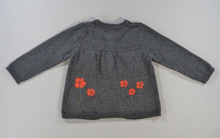 Gilet cardigan tricot gris foncé rouge fleurs nœuds Orchestra 6 mois 67 cm fille - photo numéro 4