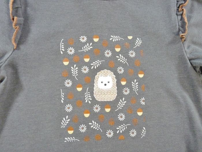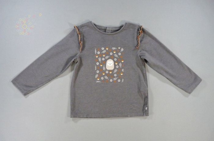 Tee-shirt manches longues jersey gris marron hérisson Obaïbi 23 mois 86 cm fille