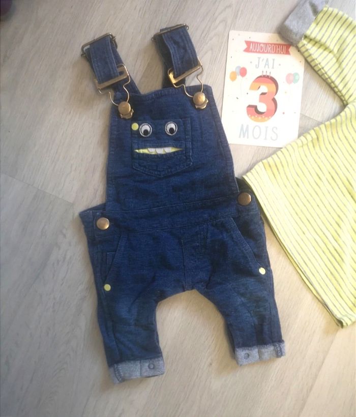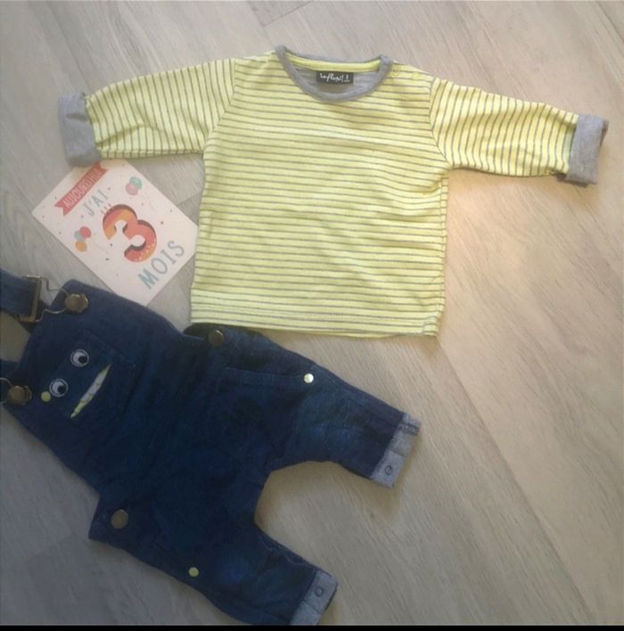 Ensemble influx 3 mois. Deux défauts sur le haut Salopette en jeans souple