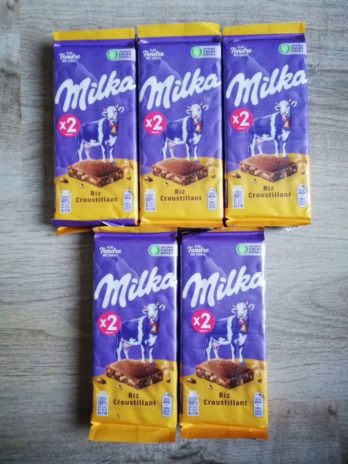 Vend un lot de 10 tablettes Milka Riz croustillant