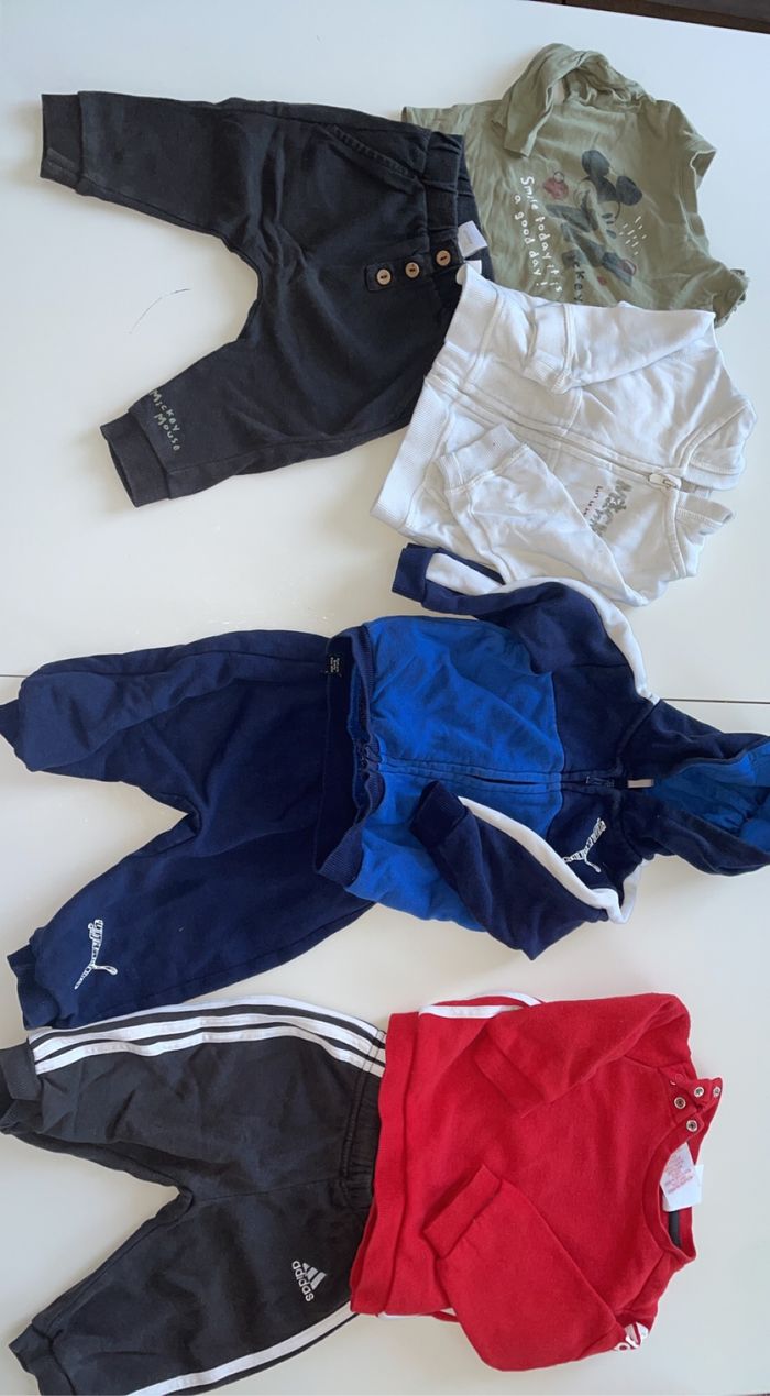 Vend lot de vêtement de 0 mois à 12 mois environs 100 pièces y compris chaussure/ basket de marque. Nike adidas timberland