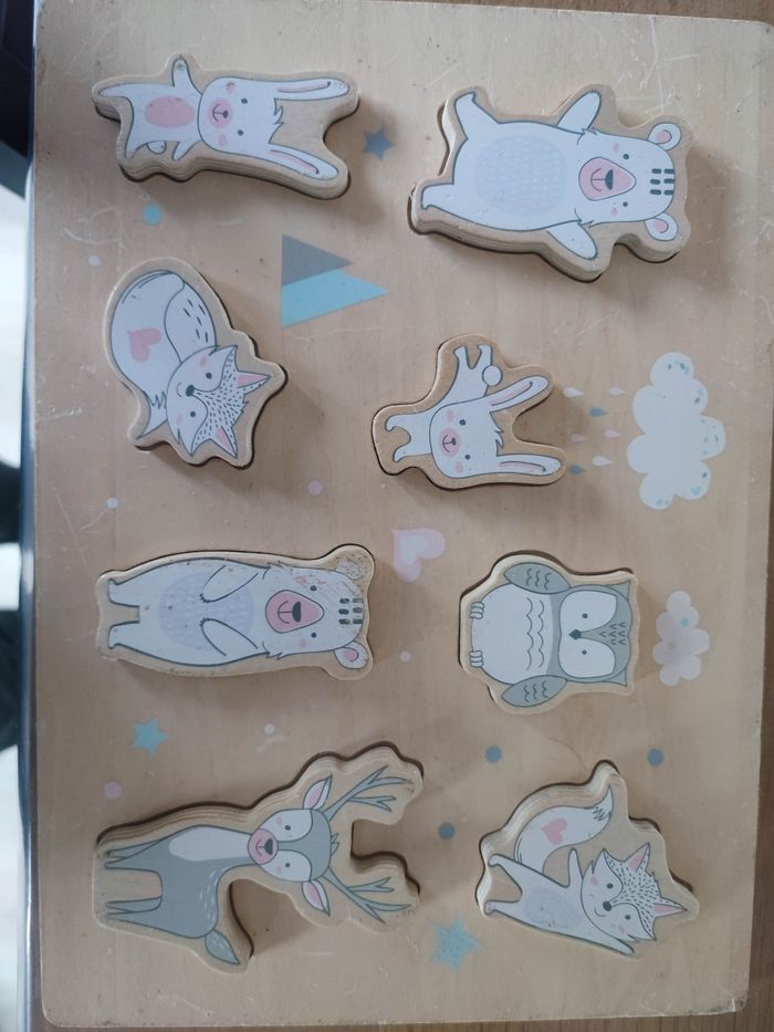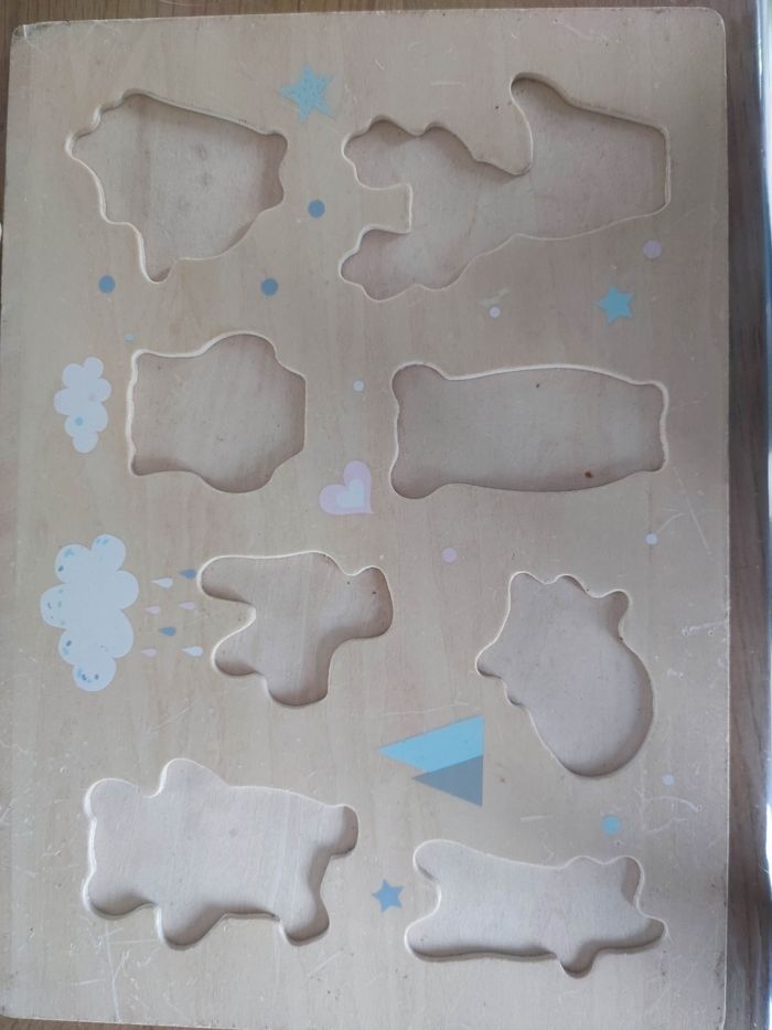 Bonjour Puzzle en bois Les dessins commencent à passer La planche à les bords usé