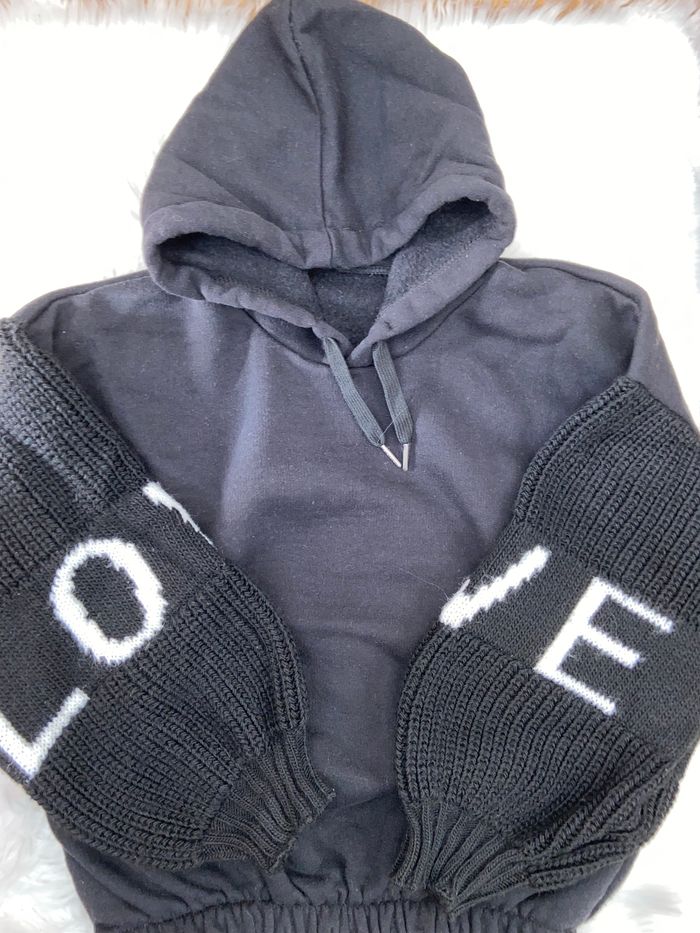 Sweat à capuche manches ballons en maille - photo numéro 1