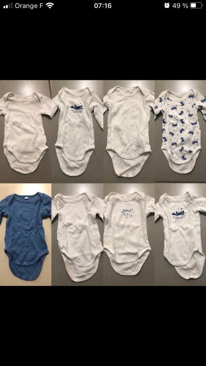lot de 8 bodys manches longues en très bon état taille 3 mois