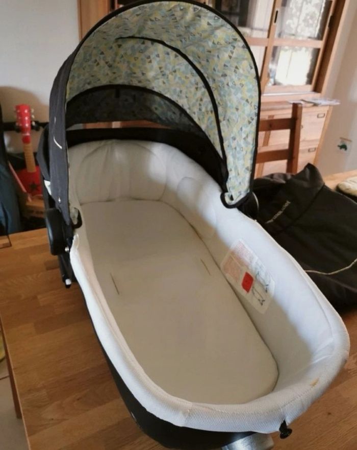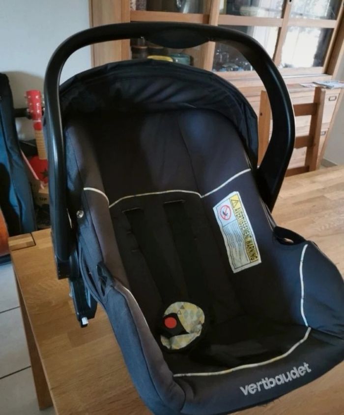 Poussette trio de marque vertbaudet. Je la vends avec plusieurs housses pour chaque élément et une capote de pluie