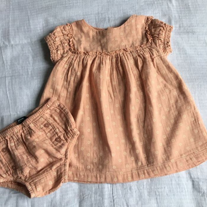 Robe manches courtes et sa culotte assortie rose saumon 6 mois Entièrement boutonnée dans le dos