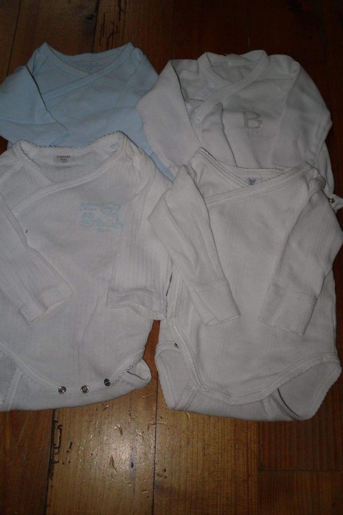 Petit lot 3 mois comprenant 7 bodies manches courtes 1 barboteuse 1 ensemble vert clair 4 bodies manches longues 1 pyjama éponge vert. Possibilité en lot ou à l unité
