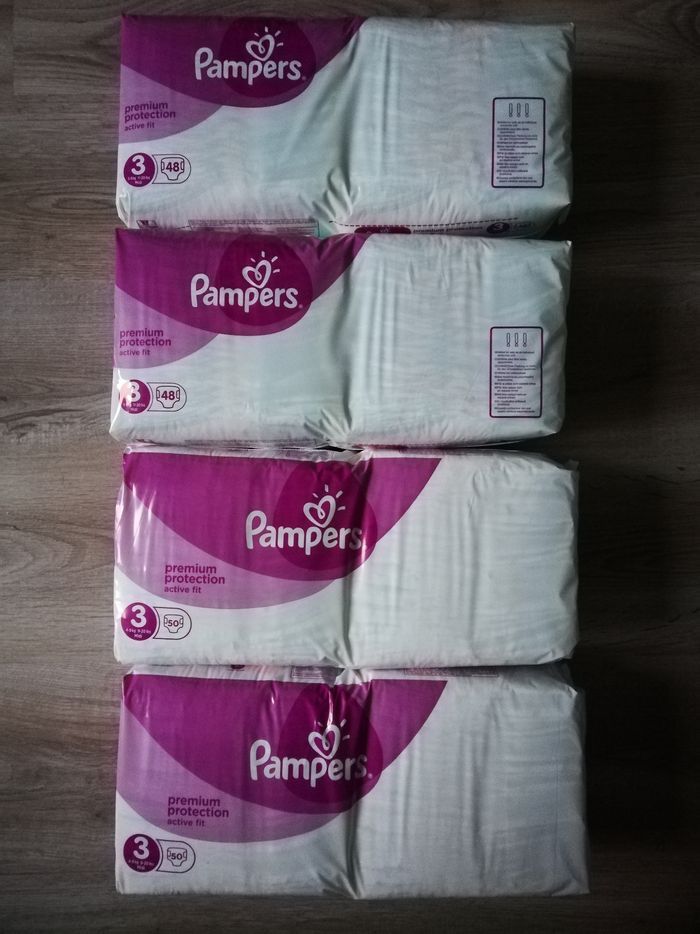 Vend un lot de 4 paquets de couches pampers T3 neufs pas ouverts