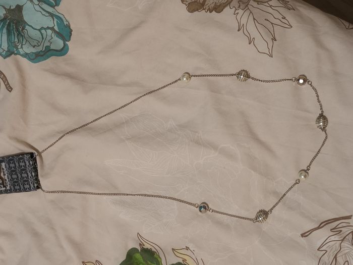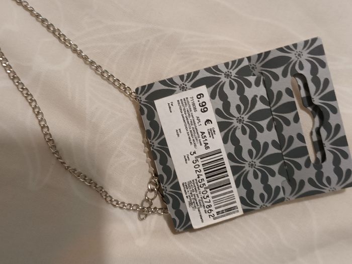 Sautoir neuf avec étiquette Acheté 6.99 € Couleur blanc et argenté Réglable en longueur