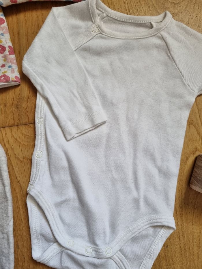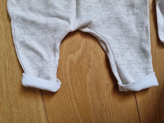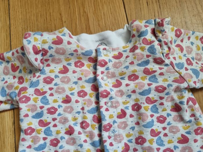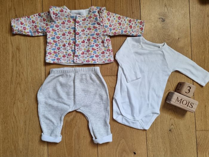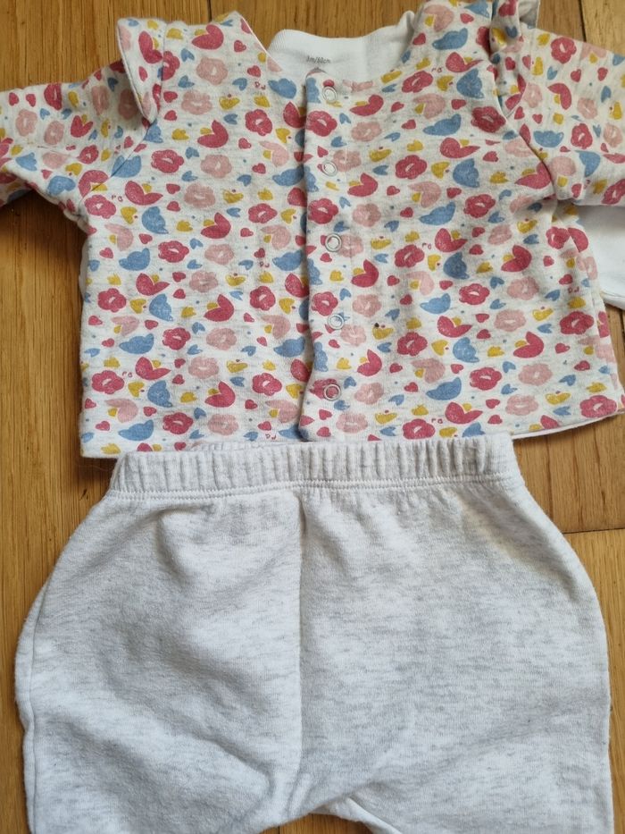 Ensemble 3mois porte 2fois Un pantalon matière douce, Un body ouverture devant Et un gilet imprimé fleurs