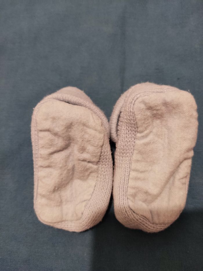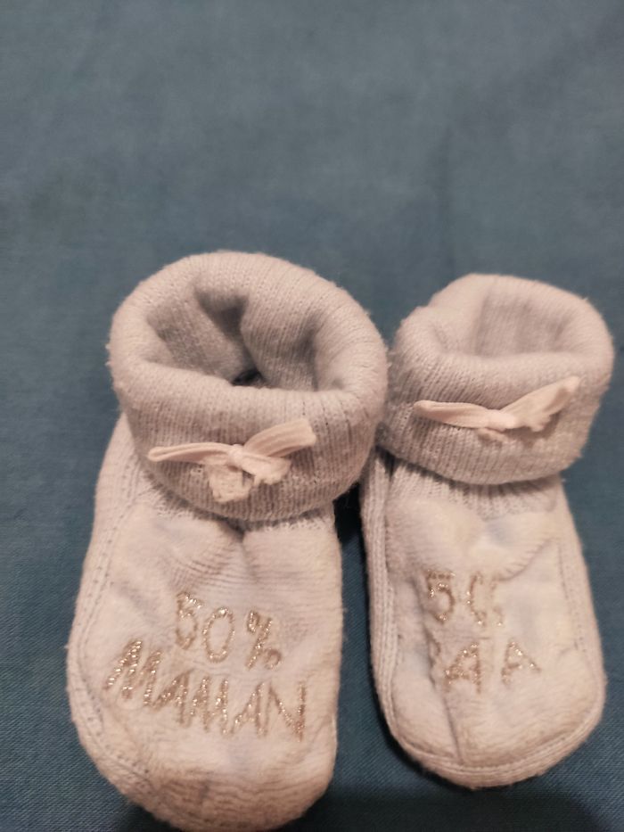 Chausson bébé bleu souple 50% papa 50% maman. Très bon état