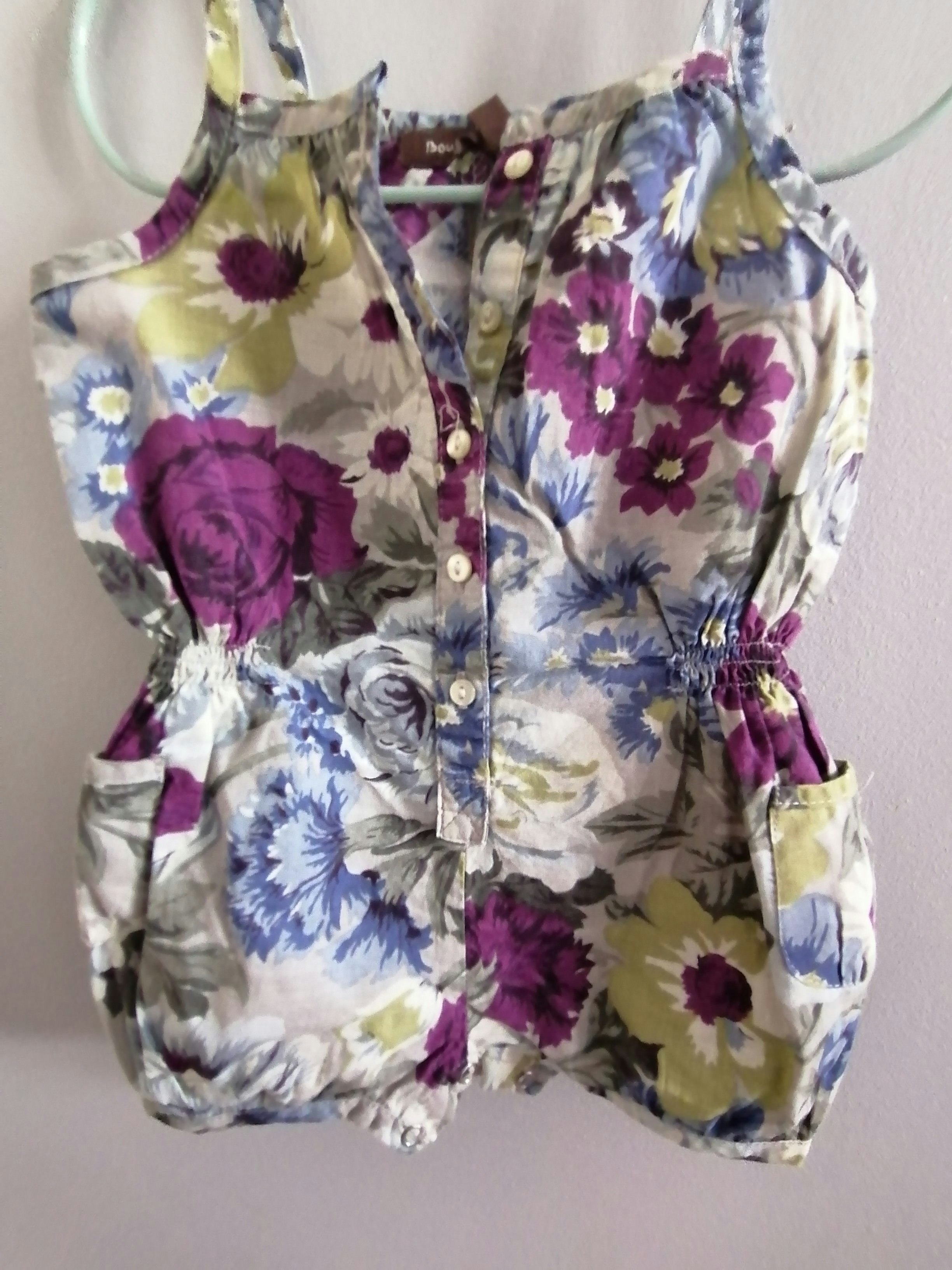 Excellent état général Ce lot comprend : - un combishort à bretelles motif fleurs Monoprix fleurs violettes vertes et bleues - un ensemble robe à bretelles, gilet et culotte corail la compagnie des petits Thème glaces Nœud corail sur le devant de la blouse - une robe à bretelle avec Bodie intégré Orchestra Pois jaunes verts et rose fuchsia Bodie fuchsia Noeud vert devant