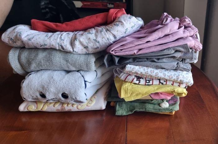 Lot de vêtements bébé fille Composé de : 14 vêtements 7 sous pull 3 gros pull 2 pantalon 2 petite robe
