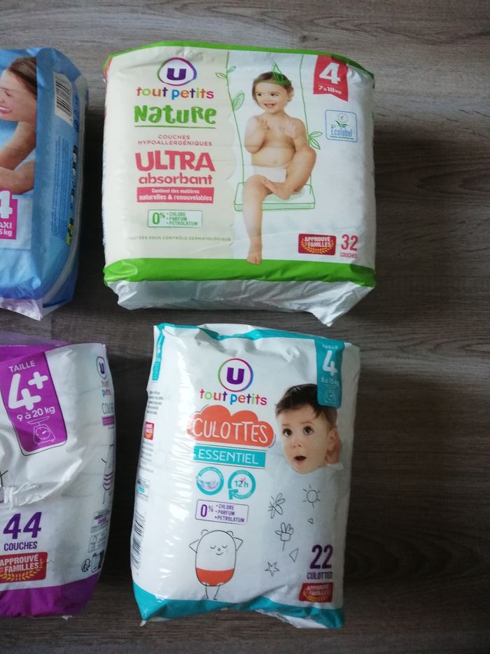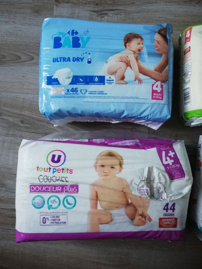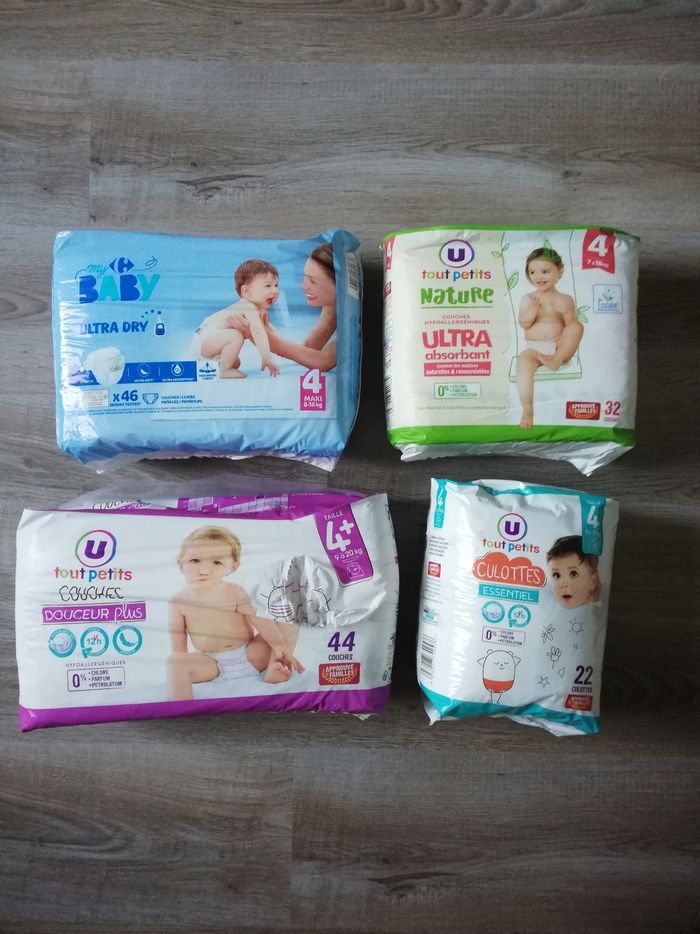 Vend un lot de 4 paquets de couches T4 neufs pas ouverts
