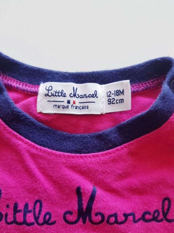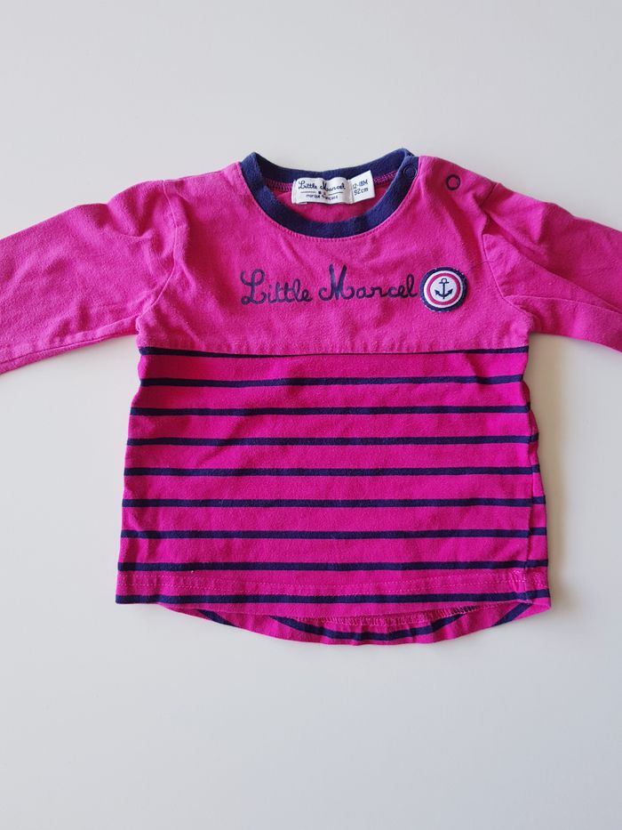 Tee-shirt marinière à manches longues Marque : LITTLE MARCEL Couleurs : rose fushia et bleu Taille : 12/18 mois - 92 cm État : très bon état Étiquette des matières découpée Prix d'achat : 15€ Retrait sur place ou envoi.