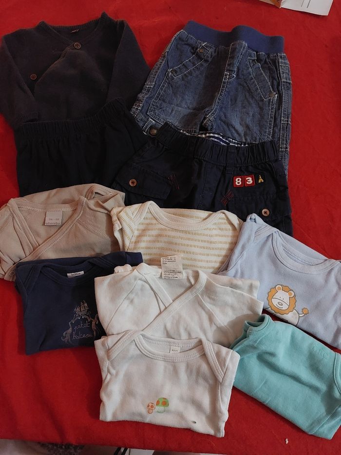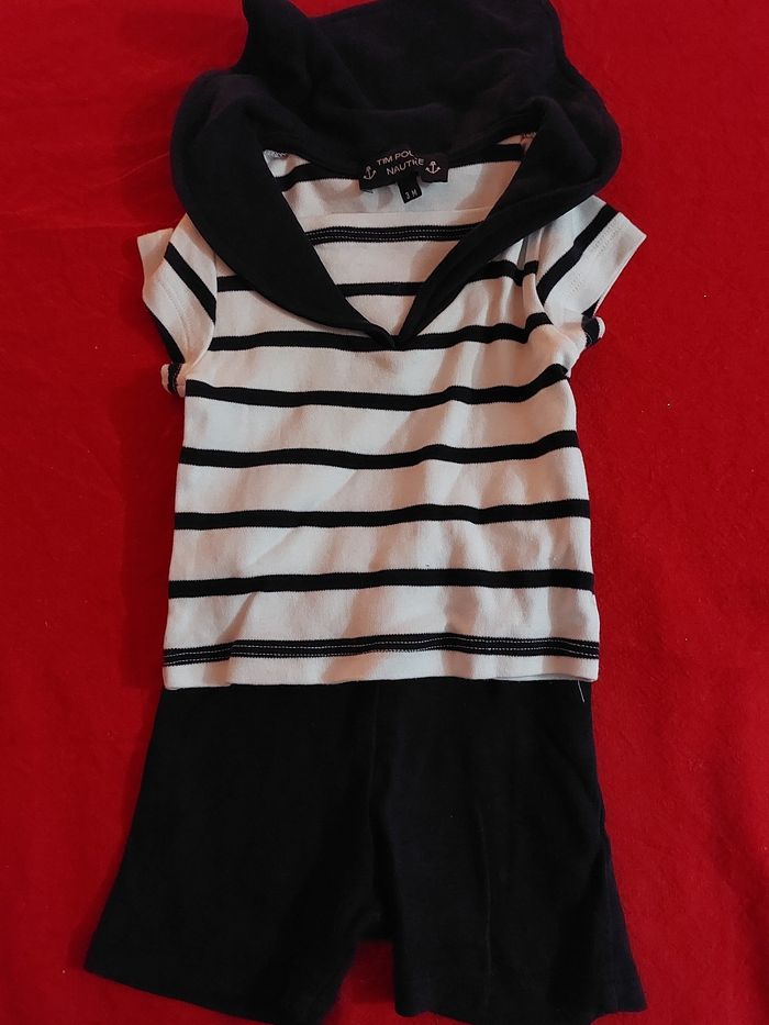 Lot vêtements 3 mois 1 ensemble marin 7 body 3 short Marques diverses