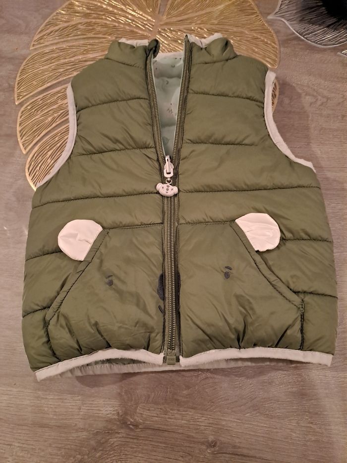 Manteau garçon sans manche réversible de couleur Kaki " koala"