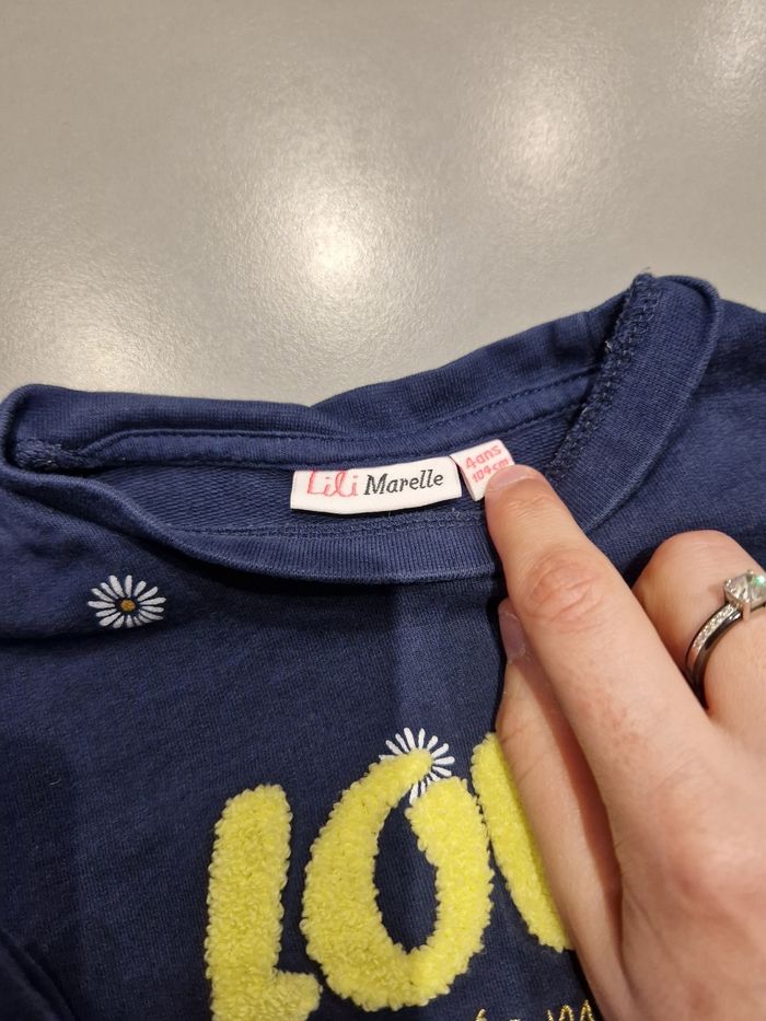 Sweat marine Très bon état 1 petite tâche vu sur photo Taille 4 ans Lili marelle