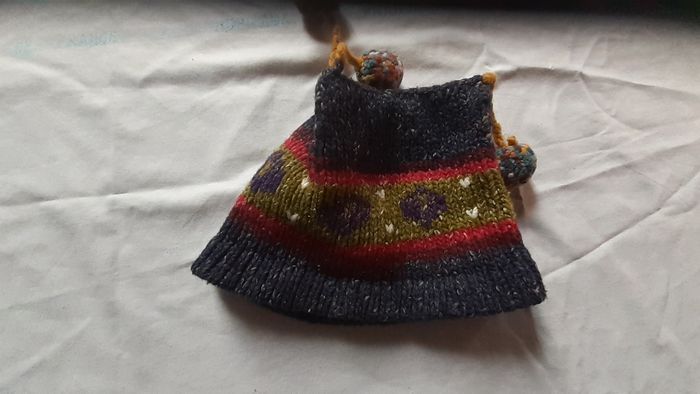 Bonnet multicolore chaud avec 3 cornes finies par 1 pompon 2 ans