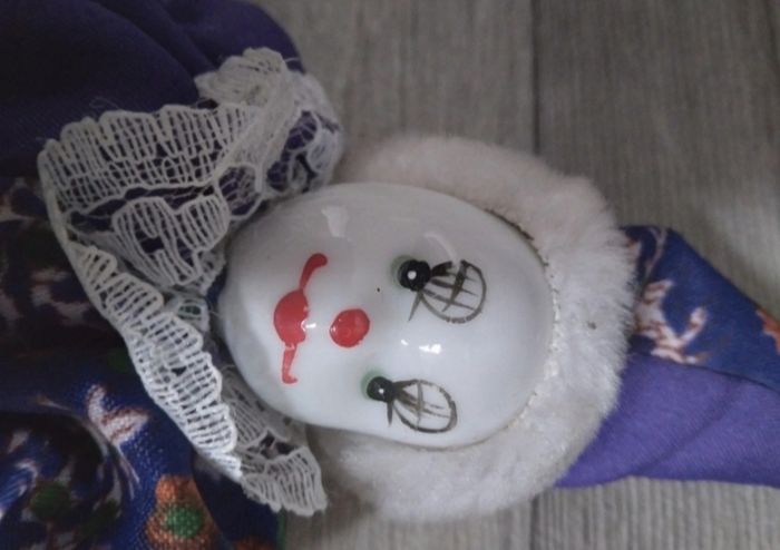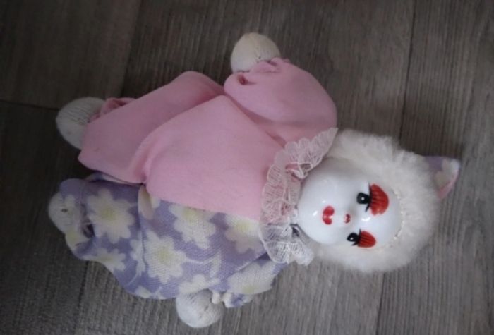 lot de 3 Mini clowns , en tissu et porcelaines
