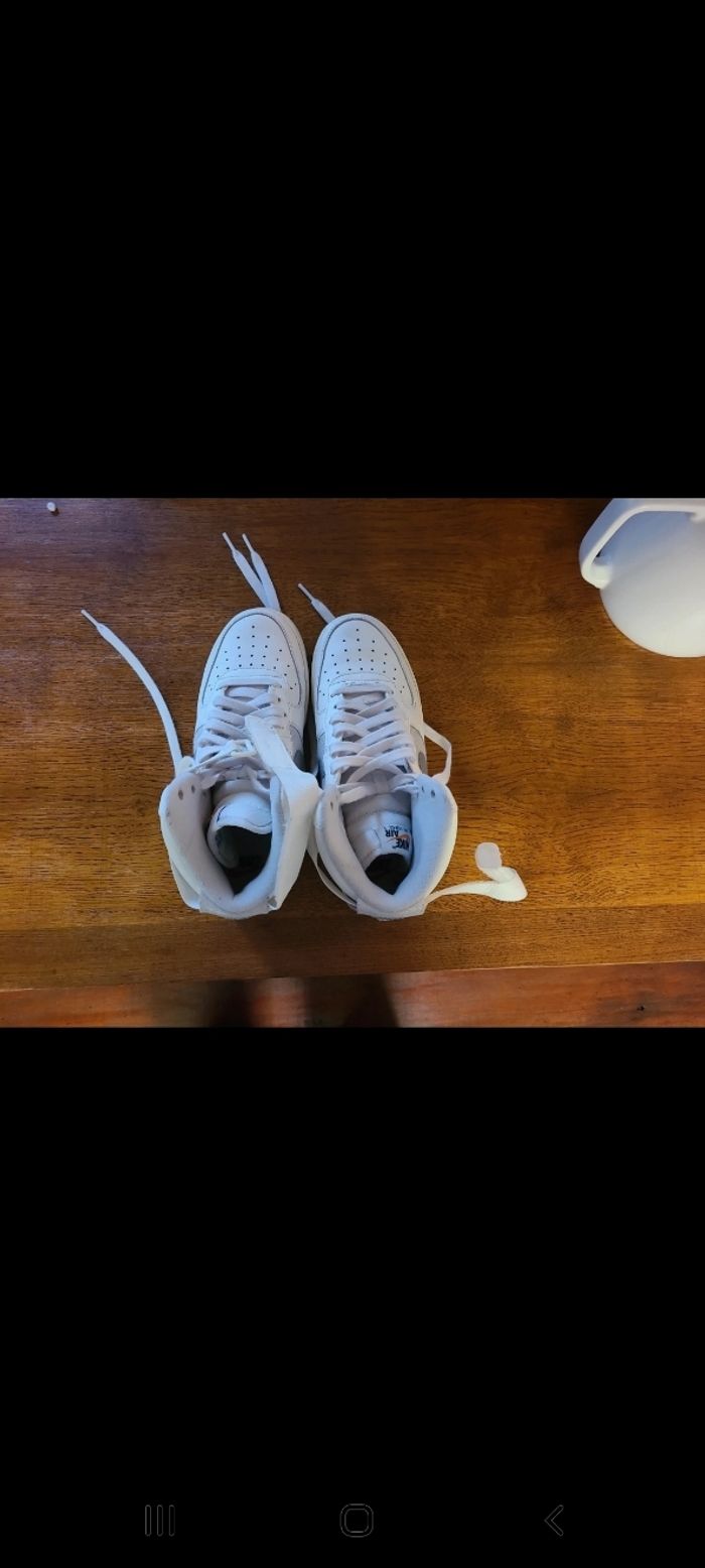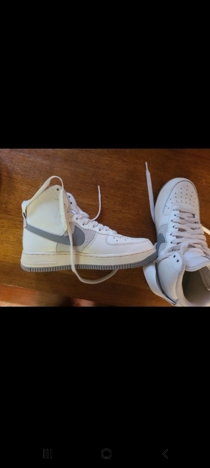 Vend basket air force one montante Blanche et grise Acheter au mois d'Août aux Etats Unis (Seattle)110$ Porté 3 fois. Elles sont neuve.