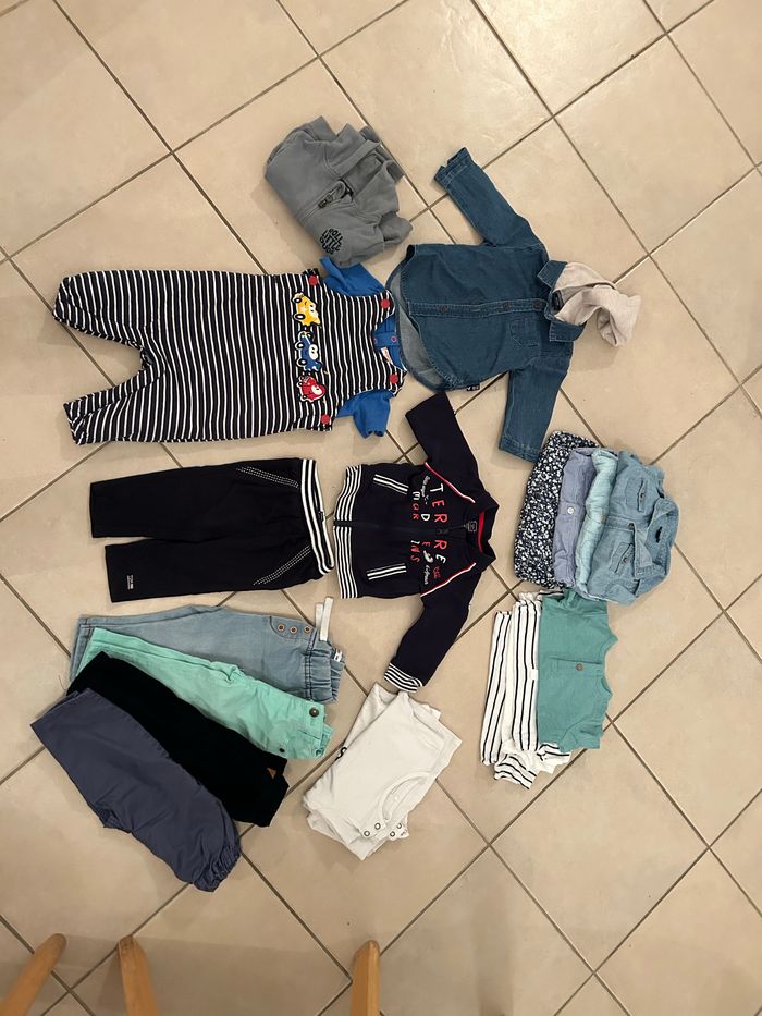 Lot 6 mois 5 chemises 2 gilets 1 salopette 5 pantalons 4 t shirt manches courtes 2 t shirt manches longues