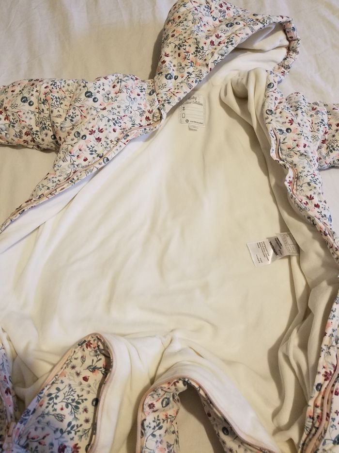 Magnifique combinaison fleurie avec polaire très très douce à l'intérieur. Idéal pour l'hiver. Mise que 2 fois. Taille 9 mois - marque Verbaudet.
