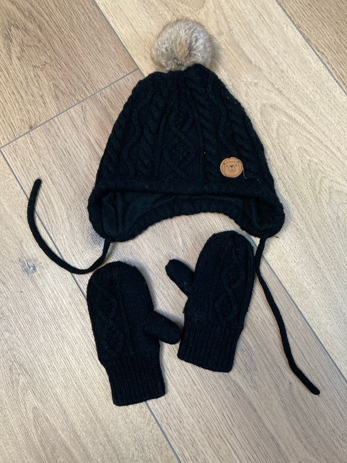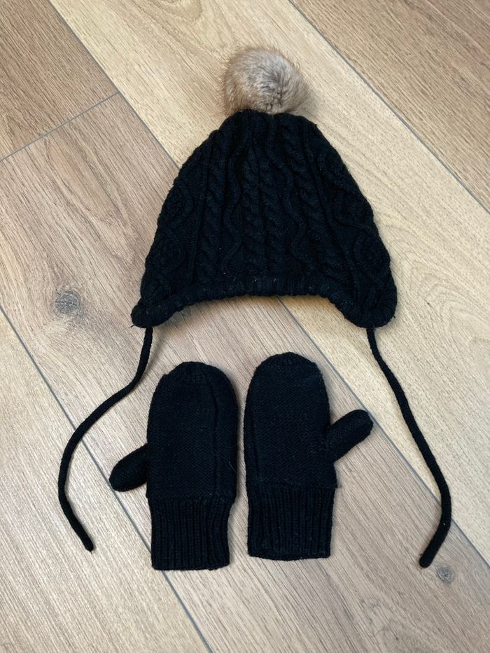 Ensemble bonnet et moufles noir - photo numéro 2