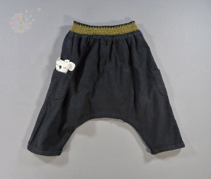 Pantalon sarouel popeline noir jaune koala Du Pareil Au Même 12 mois 74 cm fille