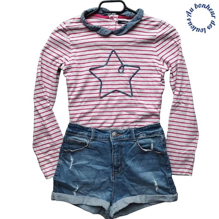 12-14 ans ensemble teeshirt ( 14 ans mais taille plutôt Petit) et short en jean slim (12 ans )