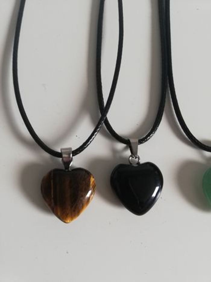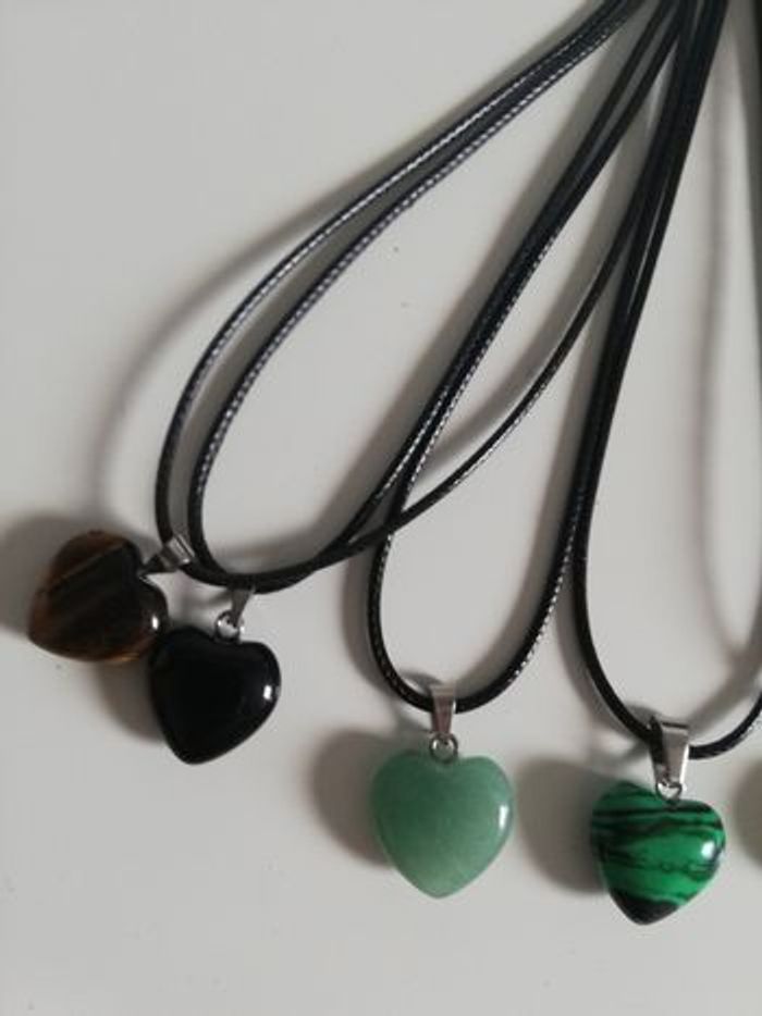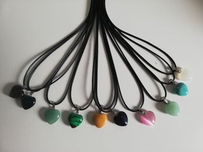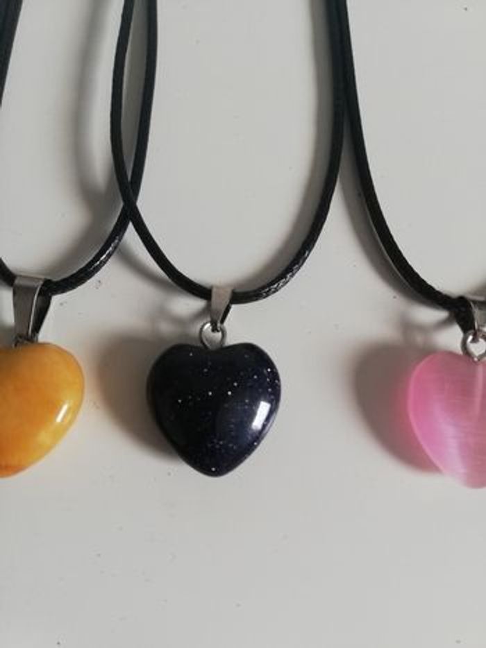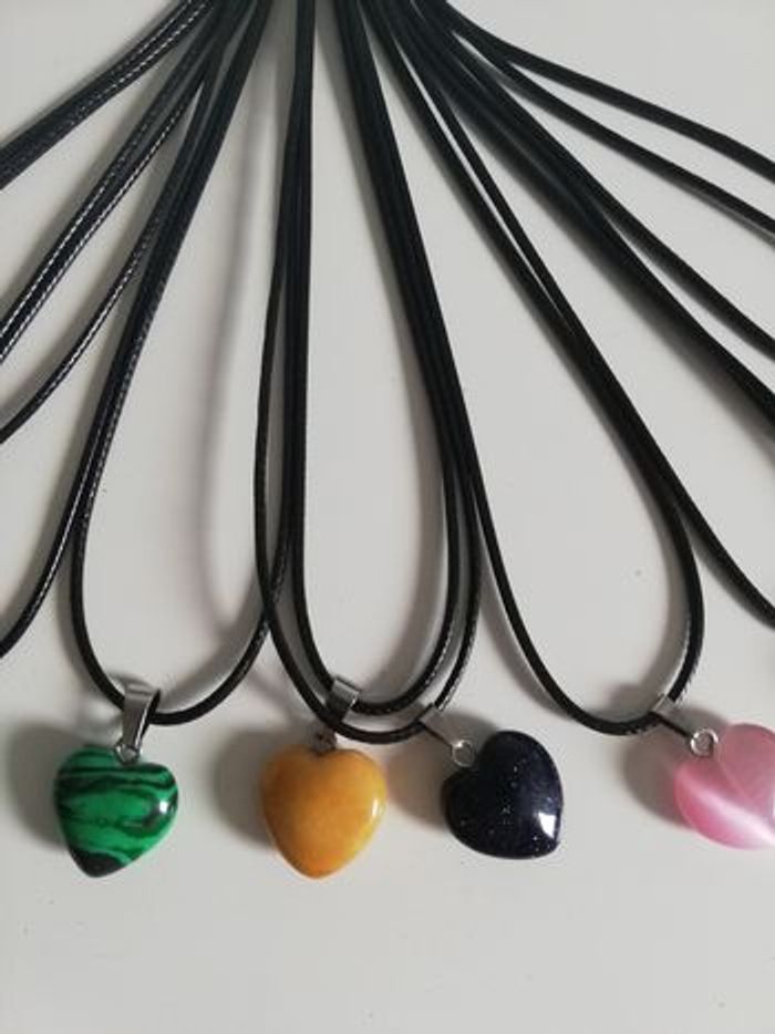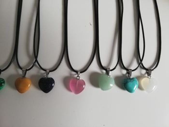 Lot de 10 colliers cœur en verre sur cordon réglable avec la petite chaînette . Love St Valentin 30euros le lot.