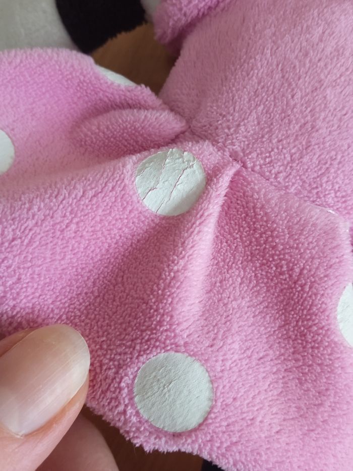 Vends peluche/doudou Minnie Bon état général hormis les flocages sur le robe et le noeud papillon qui commence à se fissurer (photo 2 et 3) A bien profité avec ma fille Dimension : 35cm