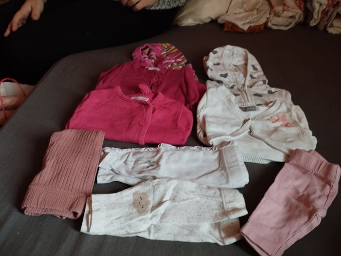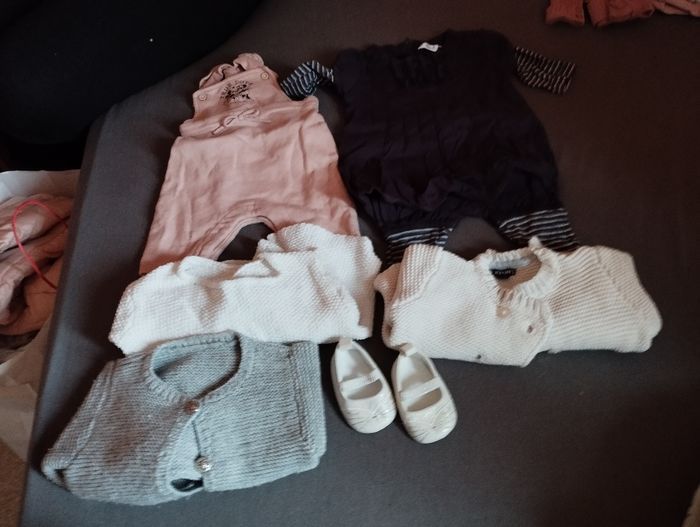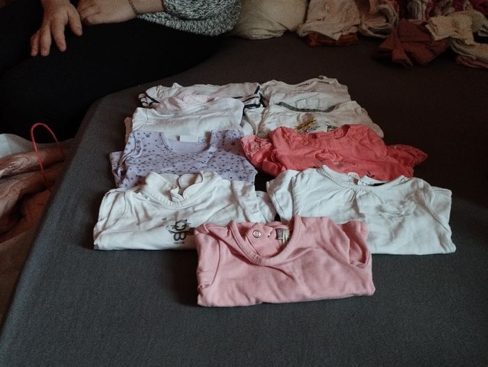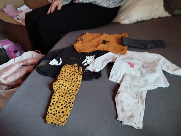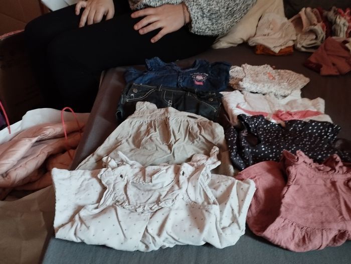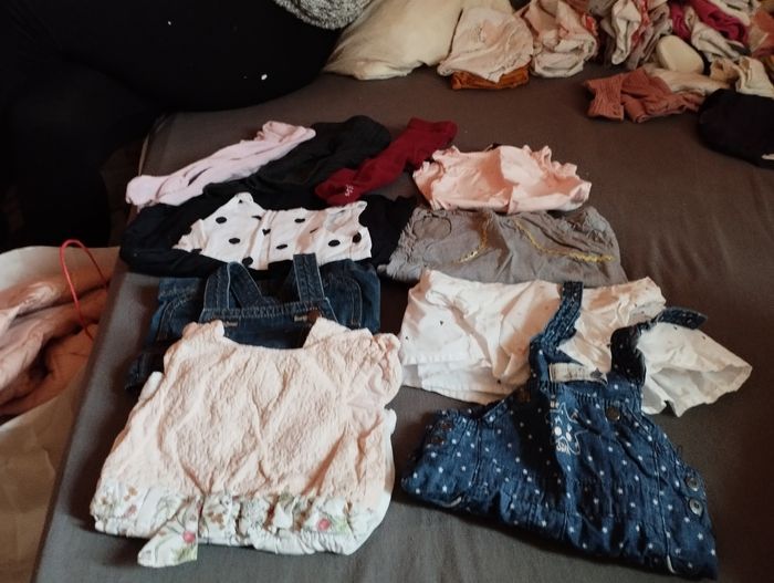 Propre peu porté beaucoup de vêtement pas de tâche ni rien . Il y a de tout manteaux , pyjamas, bodys , legging , pull, maillot manche longue etc, il y. A plus de 100 vêtements
