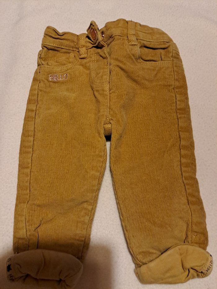 Pantalon moutarde qui se ferme avec un bouton pression, taille réglable